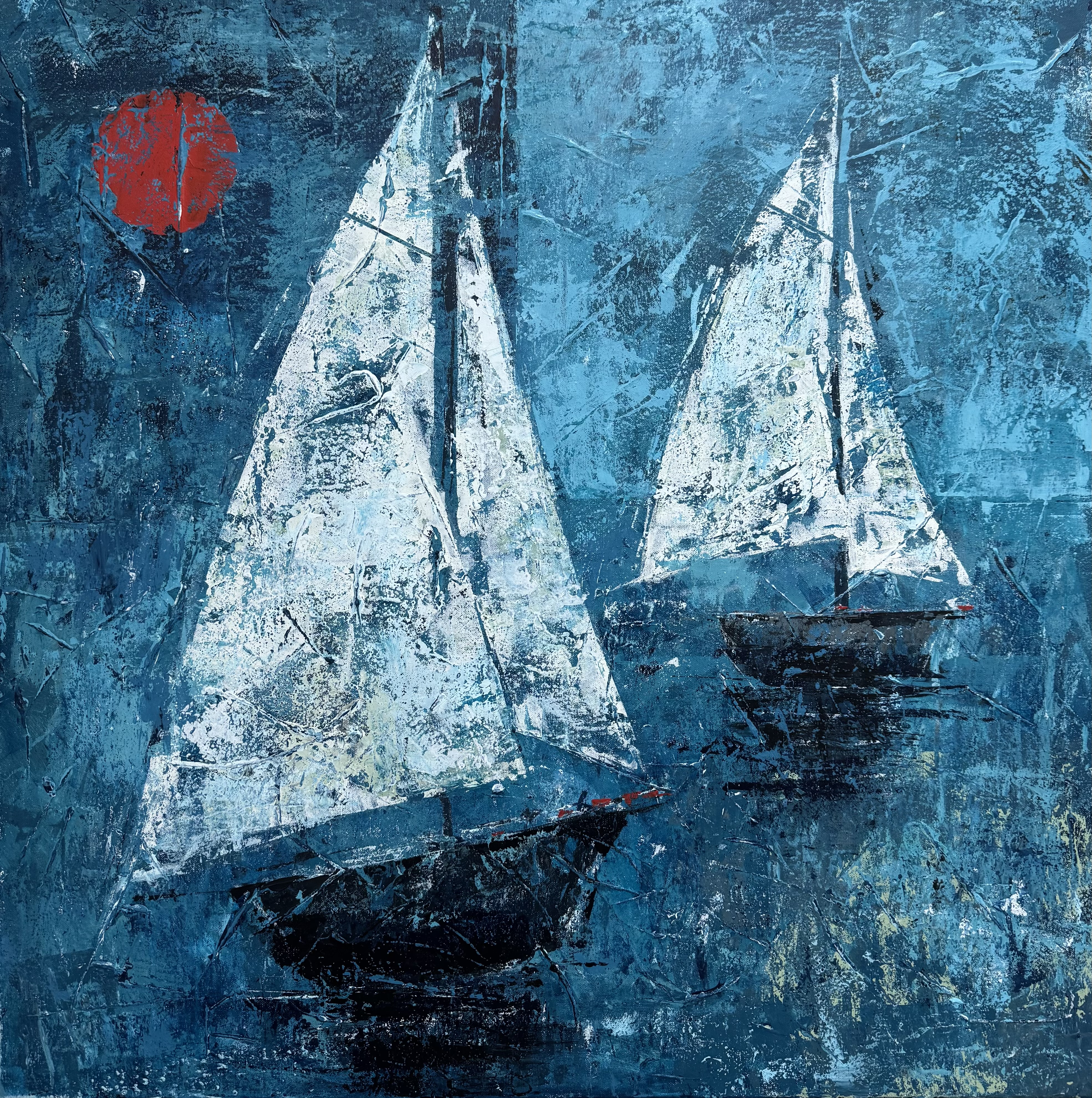 „Turkusowa” 46x61cm | akryl na płótnie | szpachelka